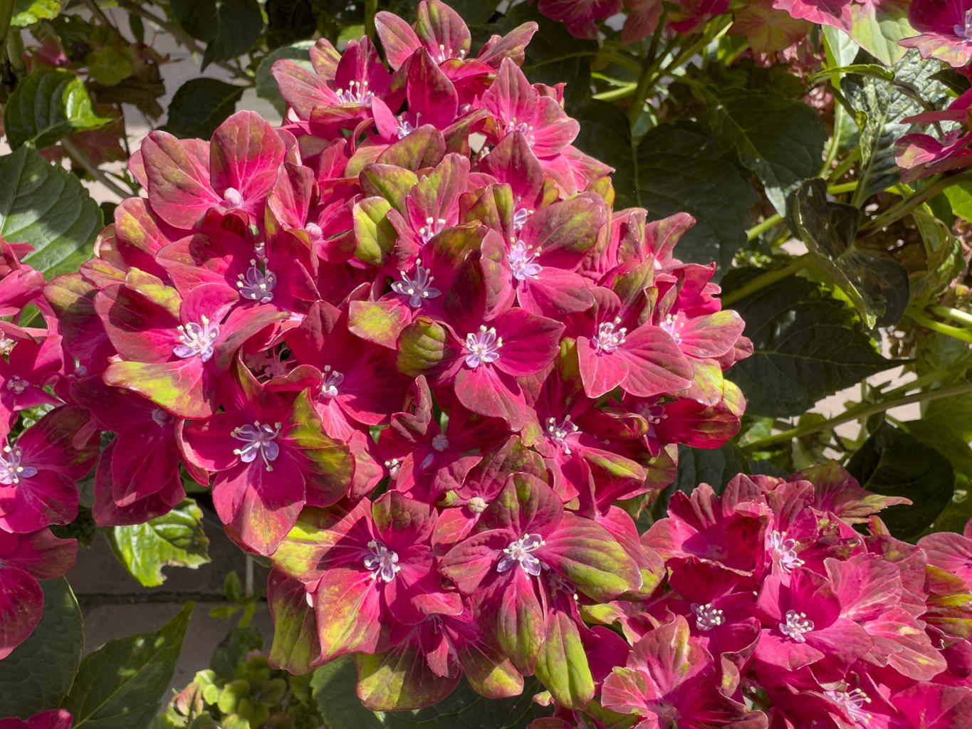 Punaste õitega hortensiad loovad aeda väga efektse värvilaigu ning sobivad hästi kokku valgete või roosade õitega hortensiasortidega.