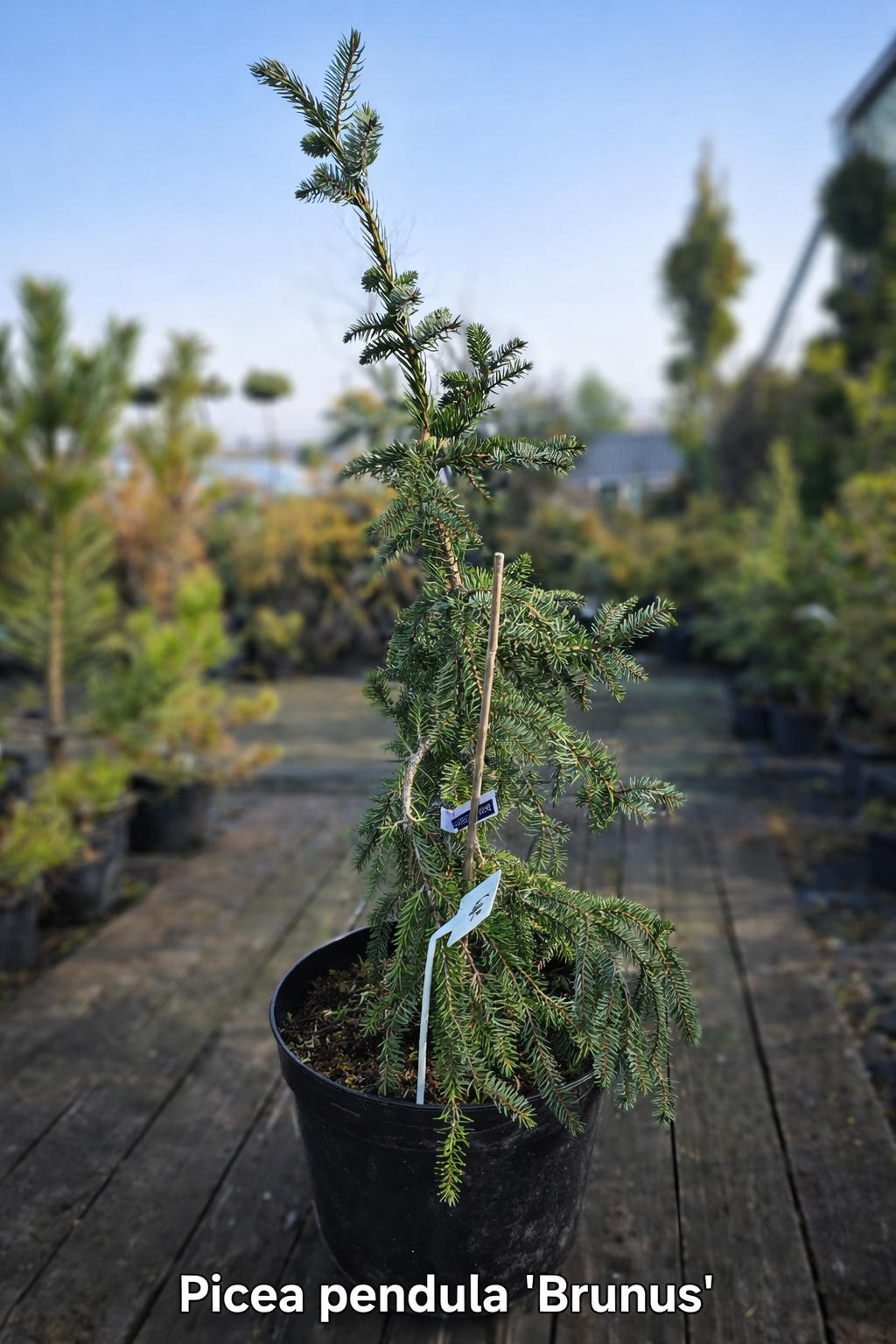 Tänu oma ainulaadsele kasvukujule lisab Picea abies ‘Brunus’ Pendula aiale arhitektuurset struktuuri ja visuaalset huvitavust.