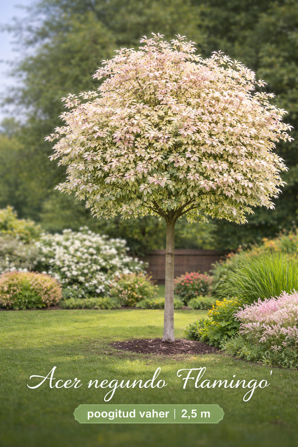 Poogitud vaher Flamingo 2,5 m on üks pilkupüüdvamaid ilupuid, mida saab Eesti aeda istutada. Selle sordi eripäraks on kaunid roosakas-valgekirjud lehed, mis annab puule õrna ja elegantse välimuse. Flamingo on ideaalne valik neile, kes võib vahet teha oma aeda midagi erilisemat ja silmapaistvamat.