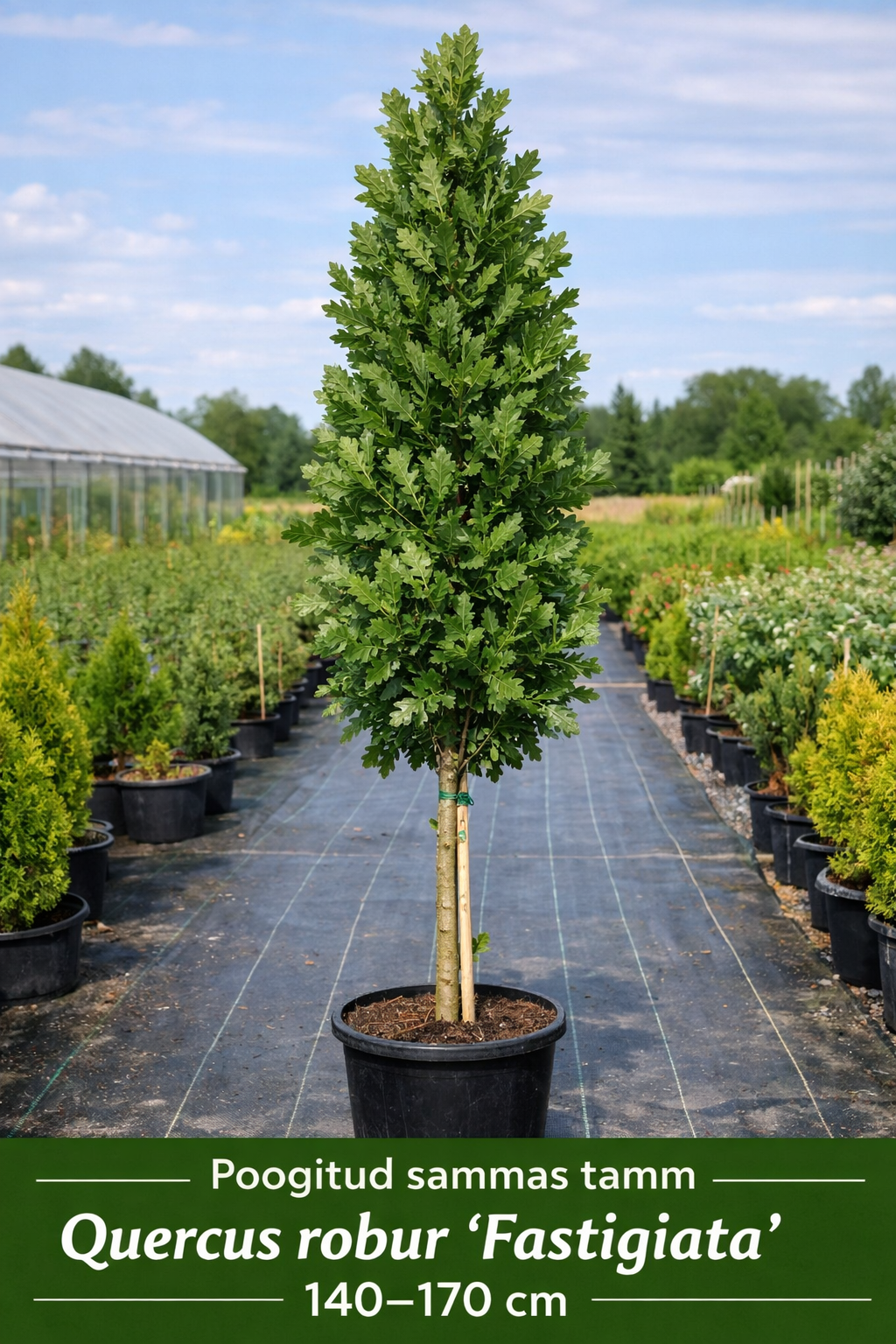 Quercus robur ‘Fastigiata’ – poogitud sammas-tamm (140–170 cm)